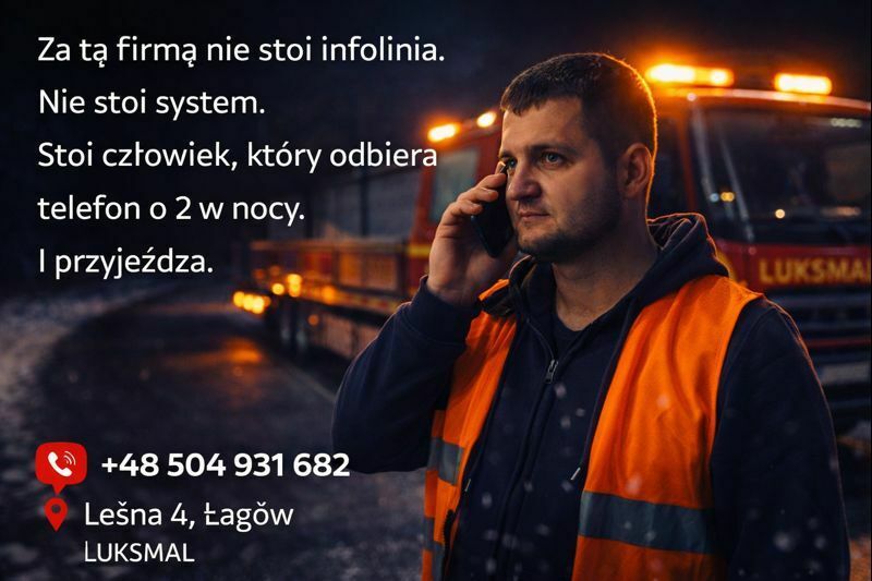 Pomoc Drogowa Zgorzelec – LUKSMAL Łukasz Malitowicz to całodobowa pomoc drogowa działająca 24/7 na terenieZgorzelca, Łagowa oraz okolic. Obsługujemy kierowców w sytuacjach awarii, kolizji i wypadków drogowych – szybko, konkretnie i bez zbędnych formalności.Oferujemy lawetę i holowanie samochodów osobowych, dostawczych, busów, maszyn, ciągników oraz nietypowych pojazdów. Zajmujemy się także transportem aut po kolizji, przewozem pojazdów niesprawnych technicznie oraz pomocą w trudnych warunkach drogowych – zimą, nocą i poza miastem.